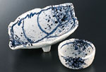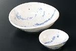 「刺身鉢」というタイトルですが、ちょっと個性的な形状を集めたら、肝心の「鉢」がちょっと少なくなってしまいました。結局、盛りつけの場所が平たい方が盛りつけのバリエーションも増え、おまけに作業もしやすい、ということでしょうか。しかし、やっぱり「造り」っていつでも主人公なんですね。器たちも主役、っていう感じのものばかりになりました。