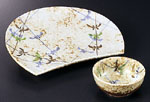 会席料理で刺身と並んで主役なのがやっぱり天ぷら。どちらかというと派手な印象がありますから、器の方はちょっと押さえた「渋め」のものを集めました。要するに、趣味がいい、といわれるようなもの、ということです。天皿であることを強調するため、どれも専用の呑水があるものばかりです。